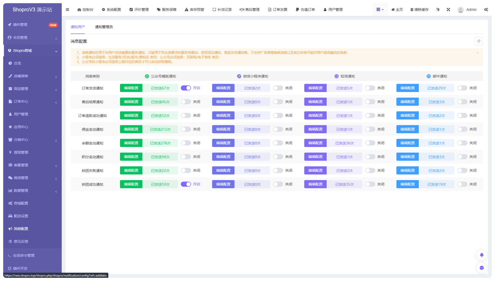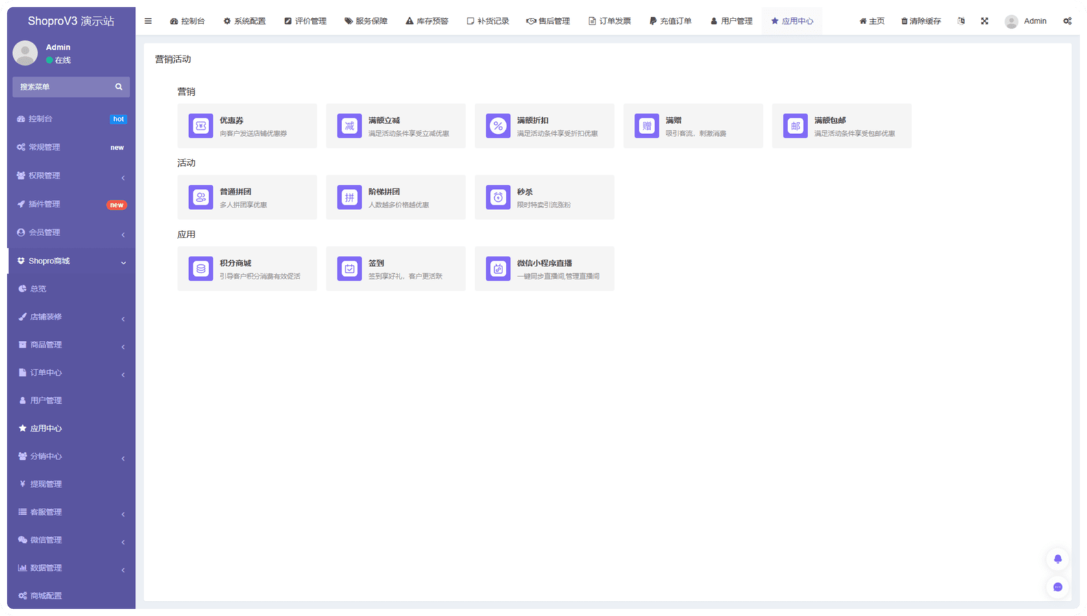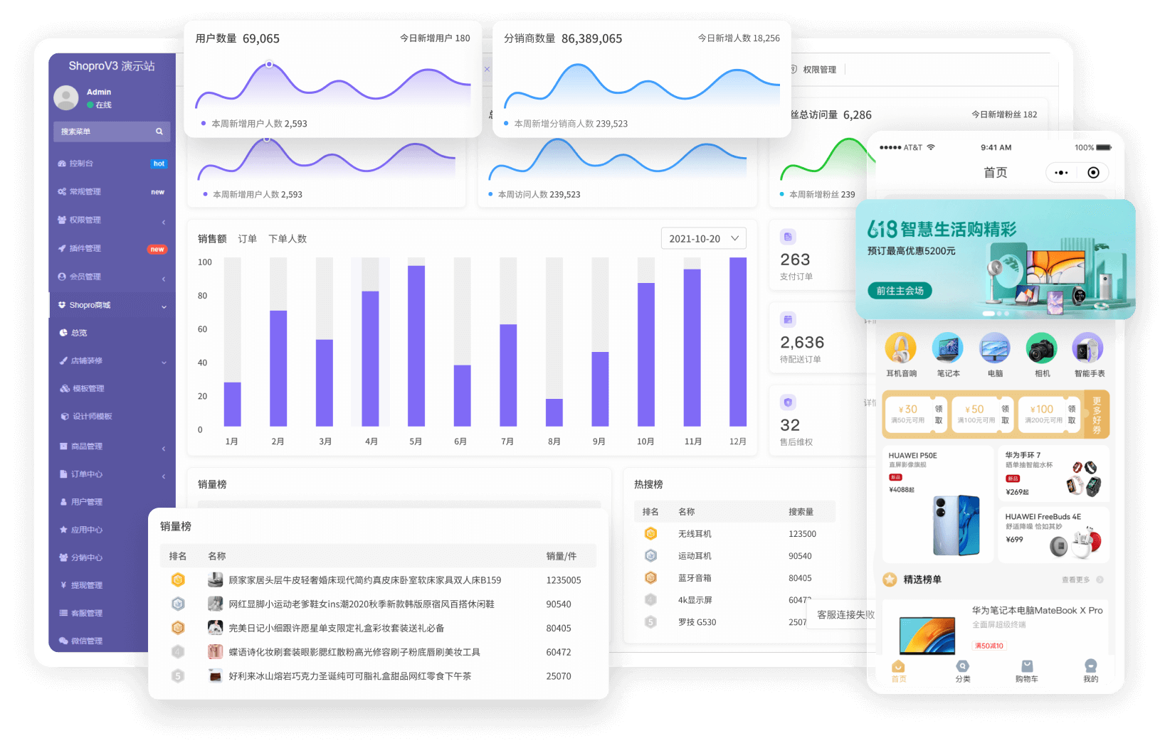 基于Fastadmin和Uniapp进行开发的多平台(微信公众号、微信小程序、H5网页、Android-App、IOS-App)购物商城,拥有强大的店铺装修、小程序直播、自定义模板、路由同步、多端支付(微信,支付宝)、多规格商品、运费模板、多地区邮费、库存管理、全端分享等功能。