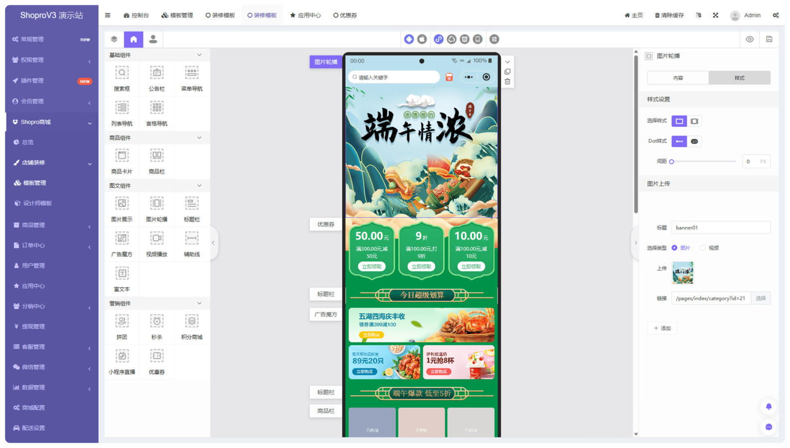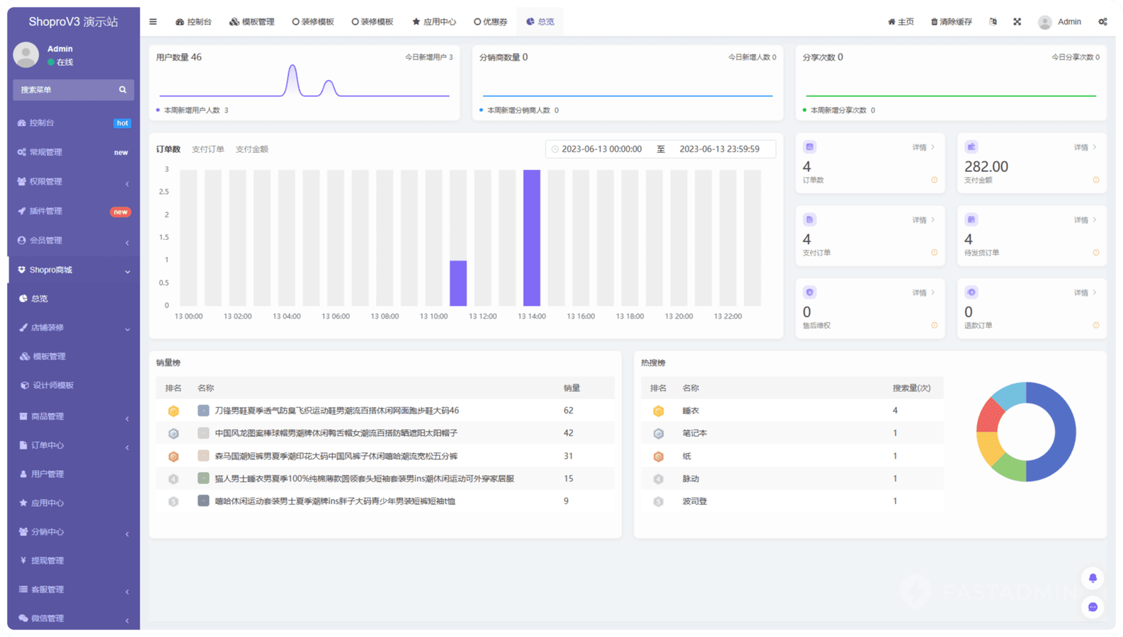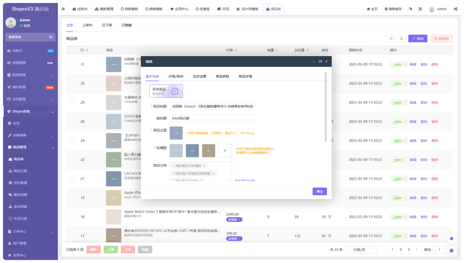 基于Fastadmin和Uniapp进行开发的多平台(微信公众号、微信小程序、H5网页、Android-App、IOS-App)购物商城,拥有强大的店铺装修、小程序直播、自定义模板、路由同步、多端支付(微信,支付宝)、多规格商品、运费模板、多地区邮费、库存管理、全端分享等功能。