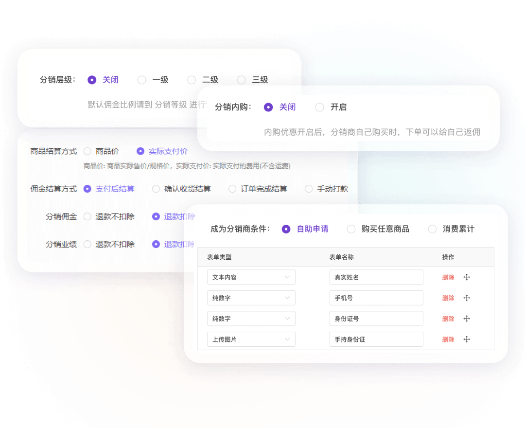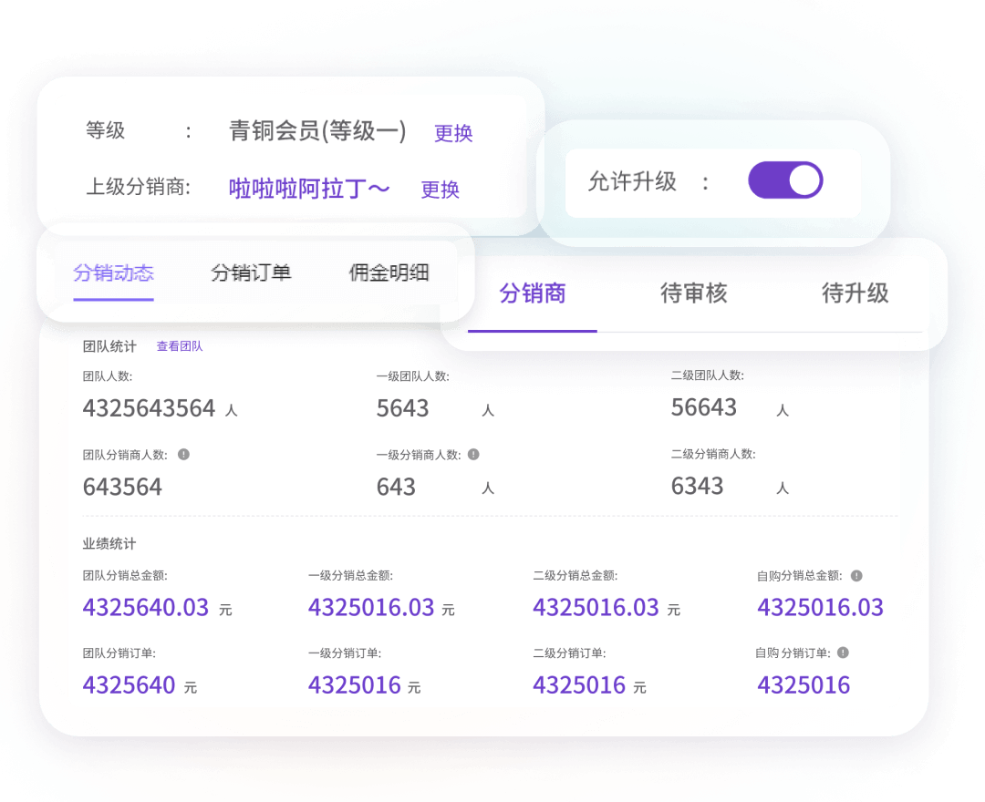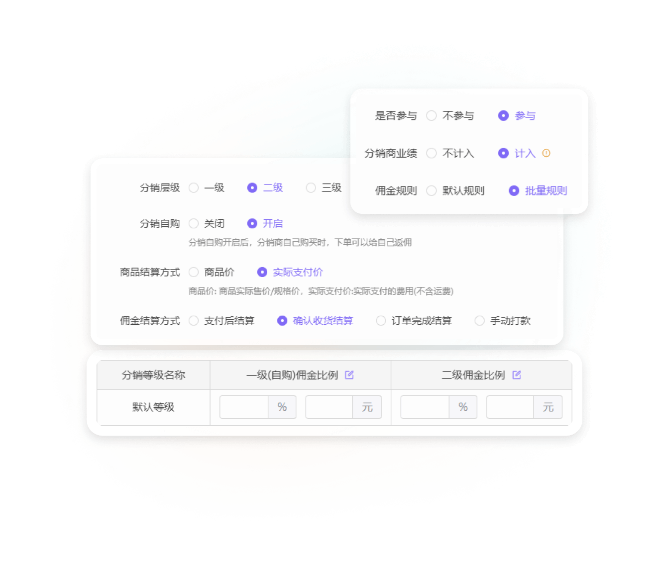 多样化分销激励机制。有利于刺激分销商推广宣传,轻松带领成千上万粉丝为您销售商品