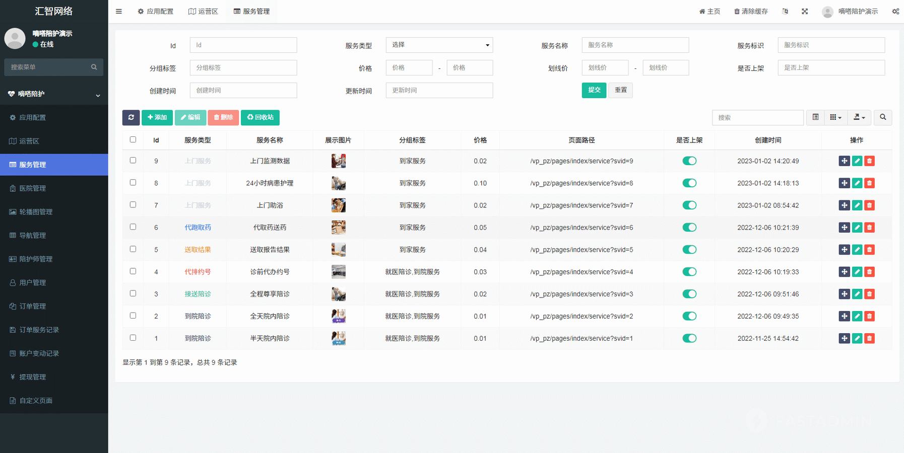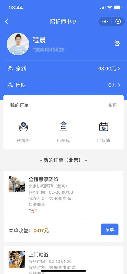 医院陪护小程序(医院陪诊小程序)基于基于FastAdmin + 原生微信尖草坪小程序开发的陪诊陪护小程序,支持多运营区,陪护师、推广者等完整闭环功能,快速搭建陪护业务平台。