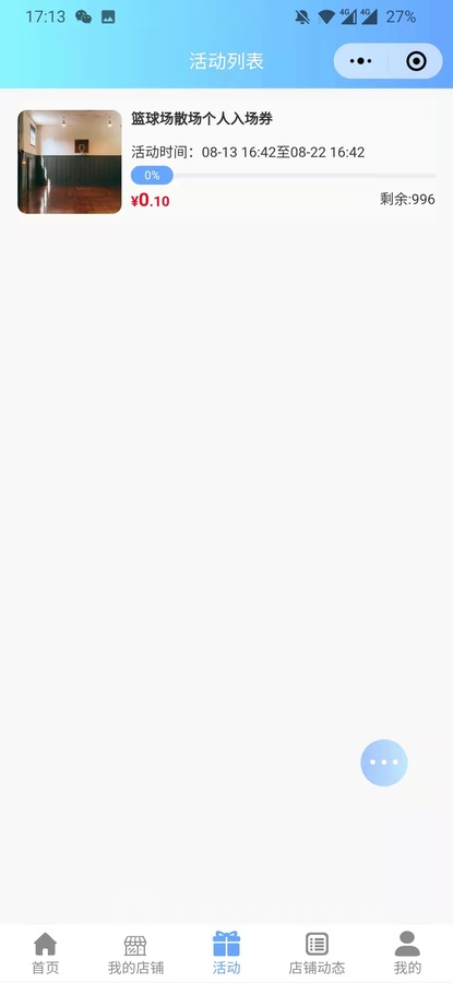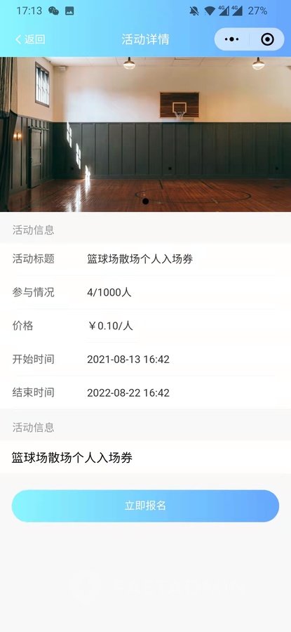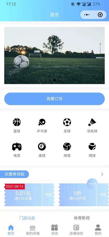 球馆预约小程序前端展示: