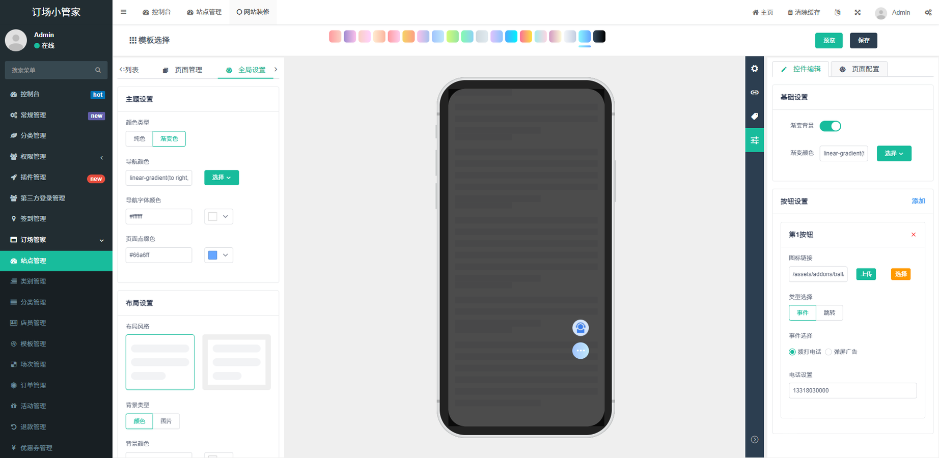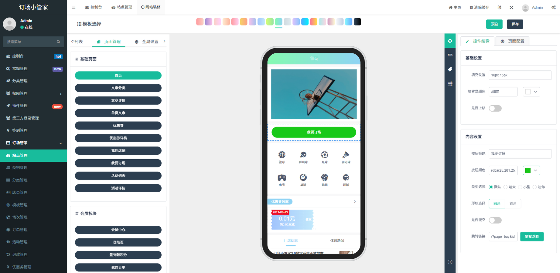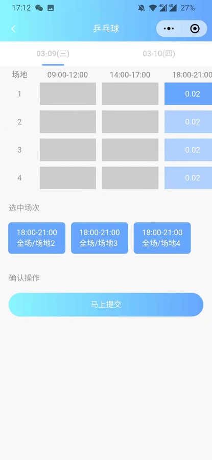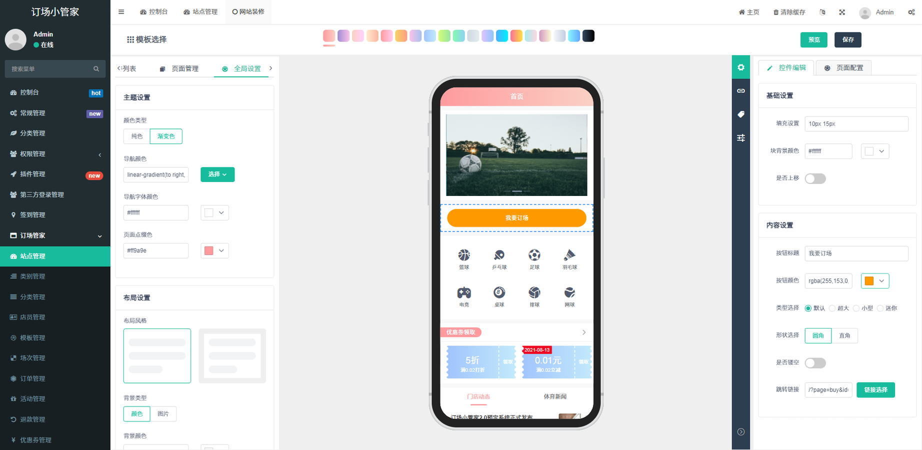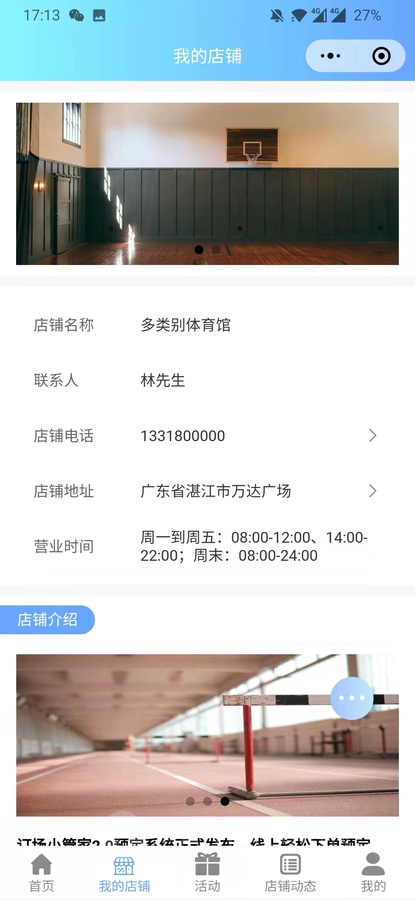 球馆预约小程序后台展示: