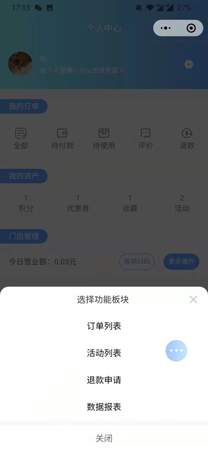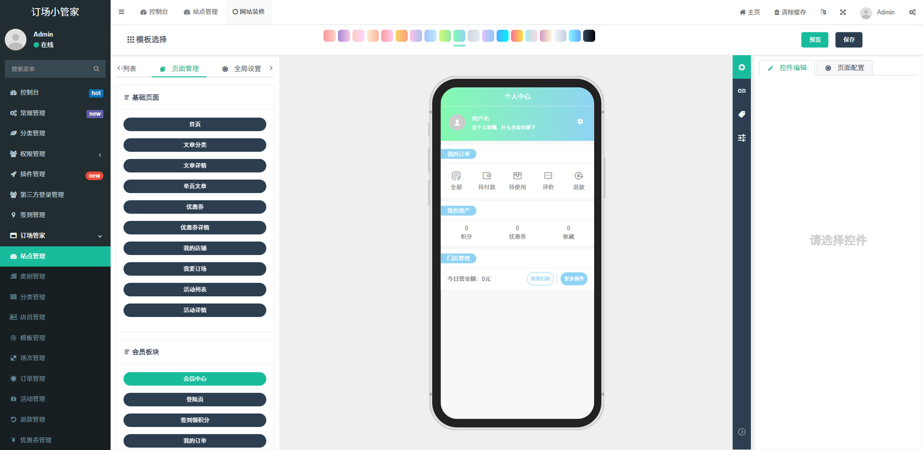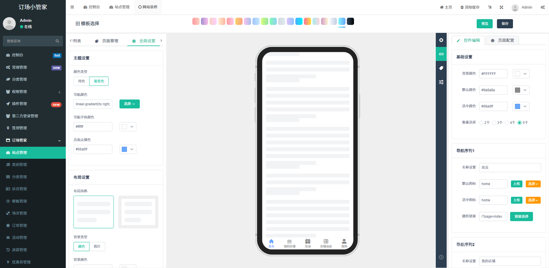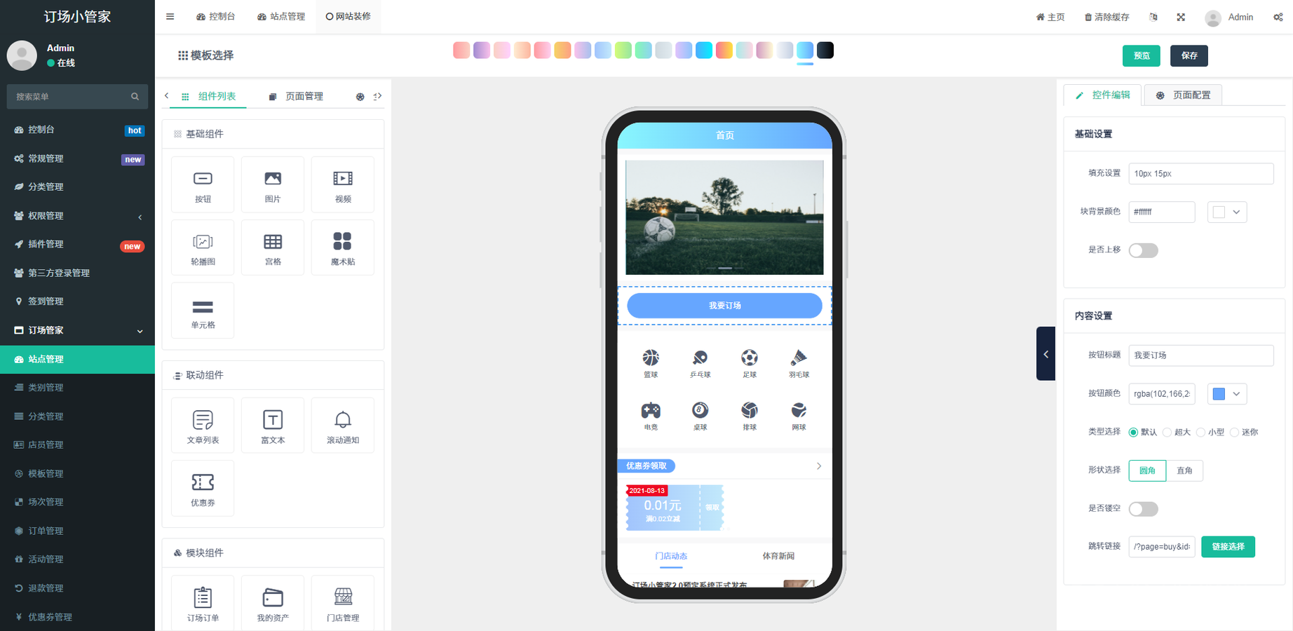 球馆预约小程序后台展示: