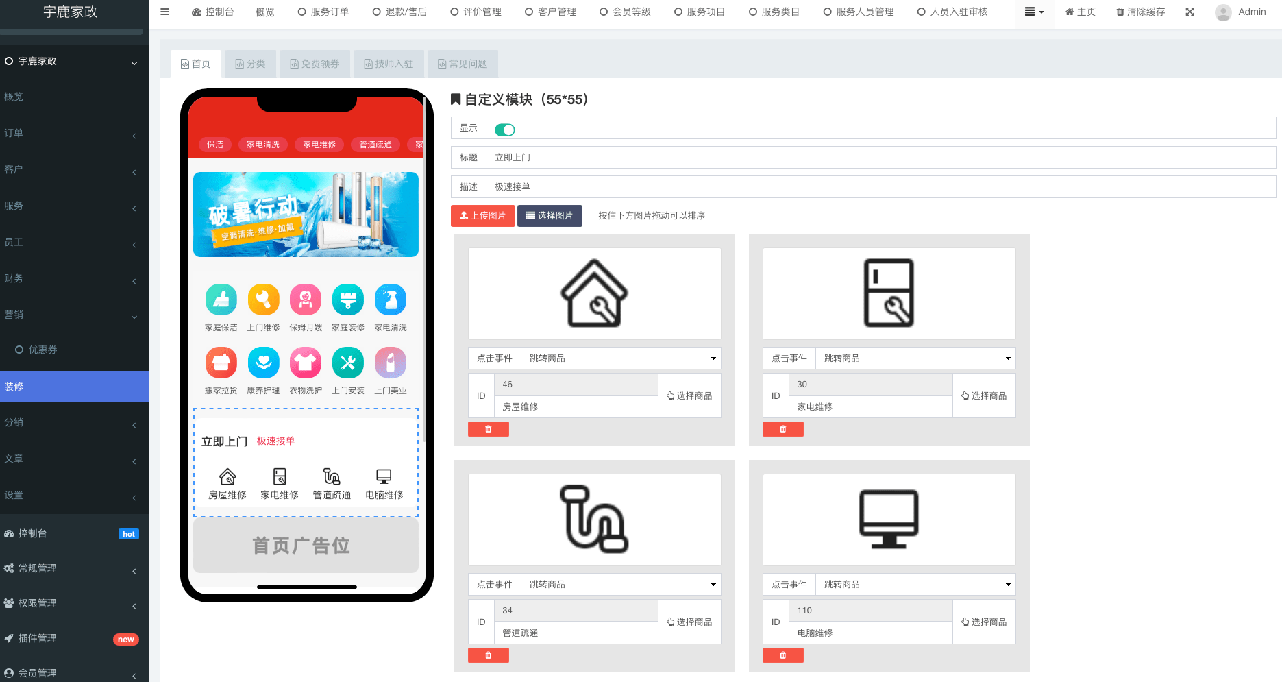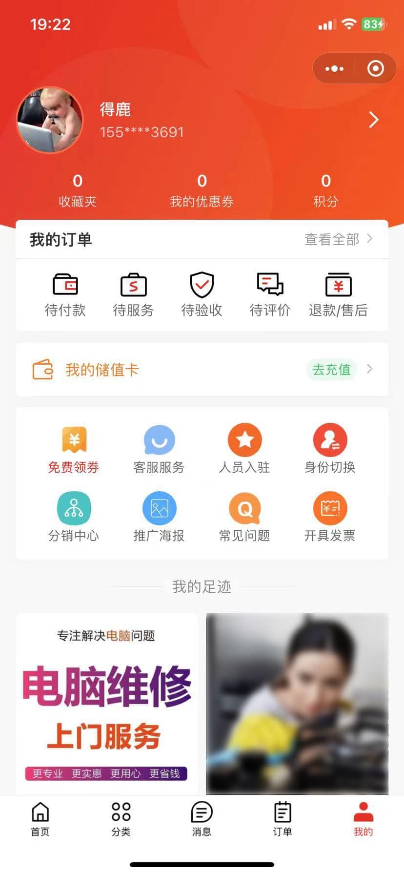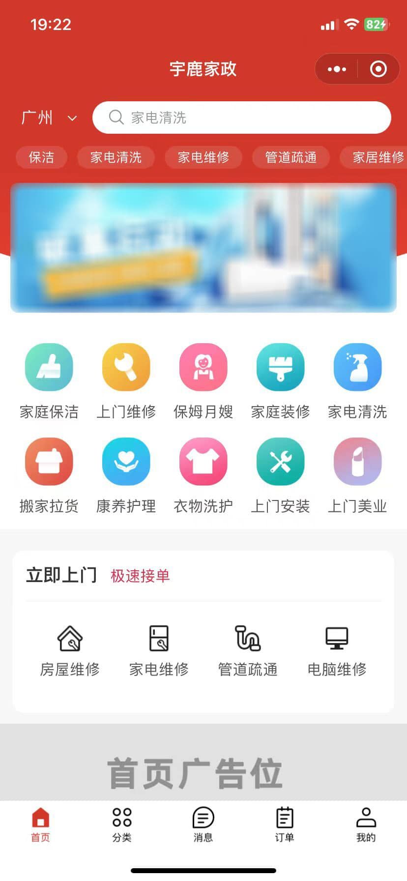 家政上门服务系统小程序支持预约上门、抢单、派单、分销(授权)、储值、积分、优惠券等功能,用户端+师傅端二合一的家政服务微信小程序. 分别有小程序客户端,小程序师傅端,后台管理以及分销系统。
