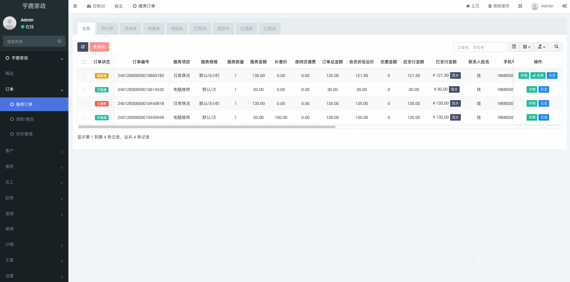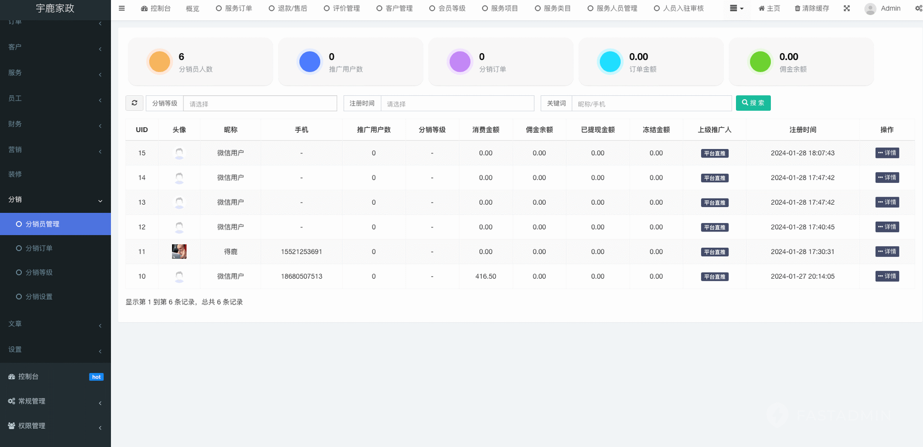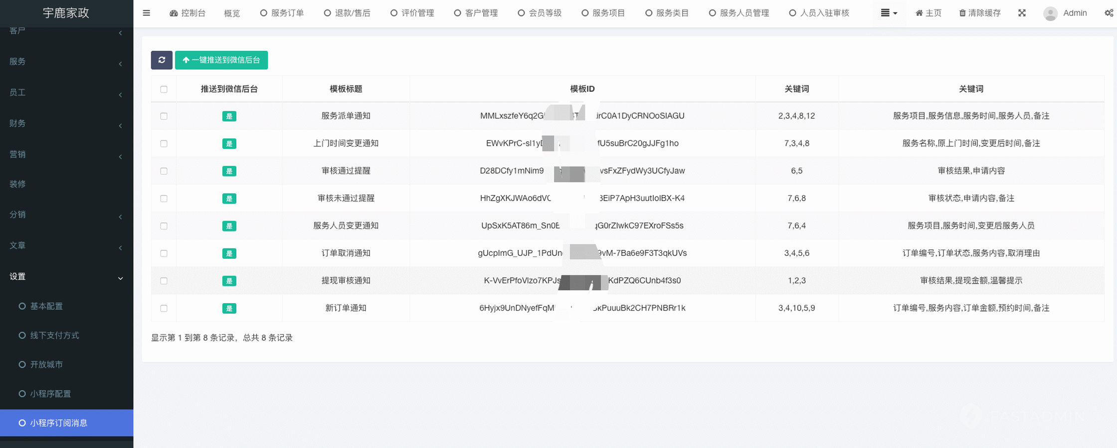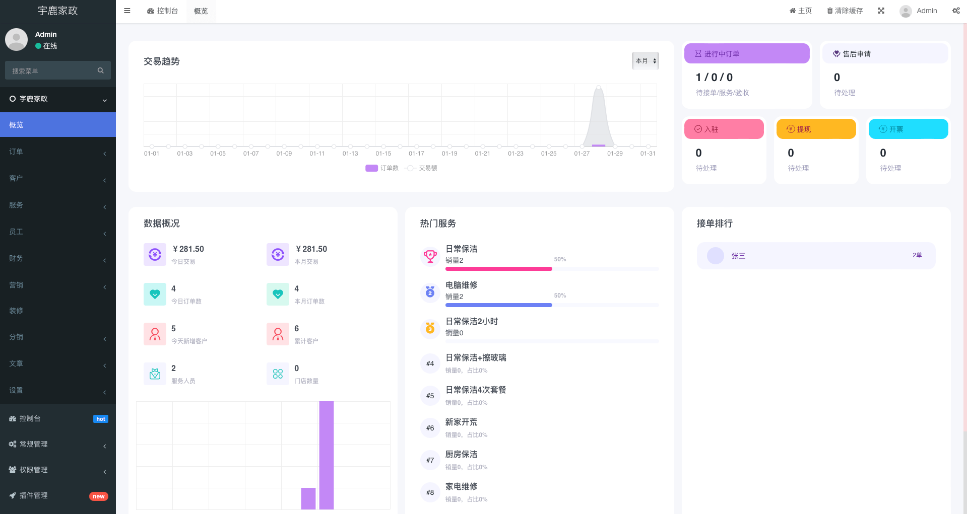 家政上门服务系统小程序支持预约上门、抢单、派单、分销(授权)、储值、积分、优惠券等功能,用户端+师傅端二合一的家政服务微信小程序. 分别有小程序客户端,小程序师傅端,后台管理以及分销系统。