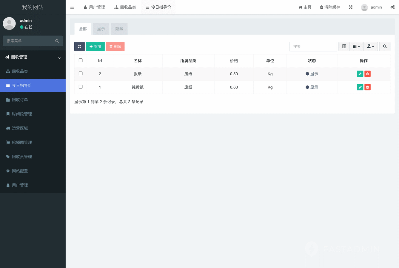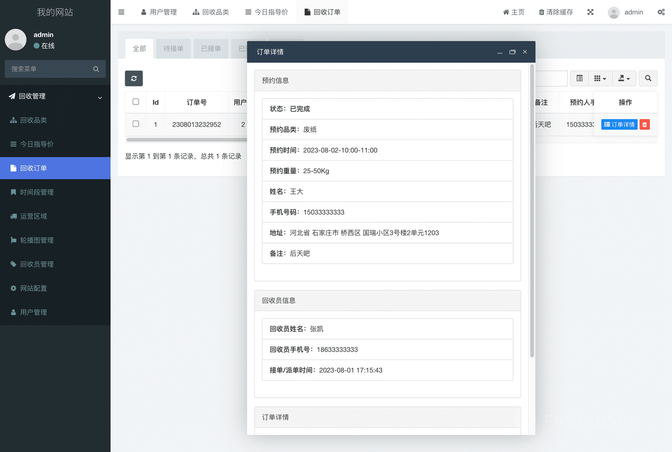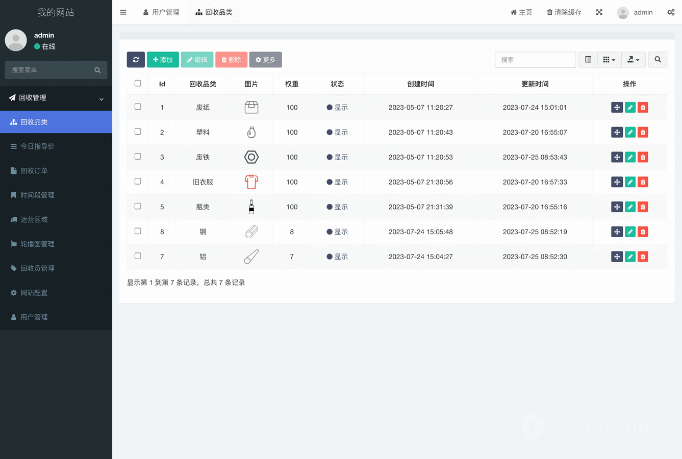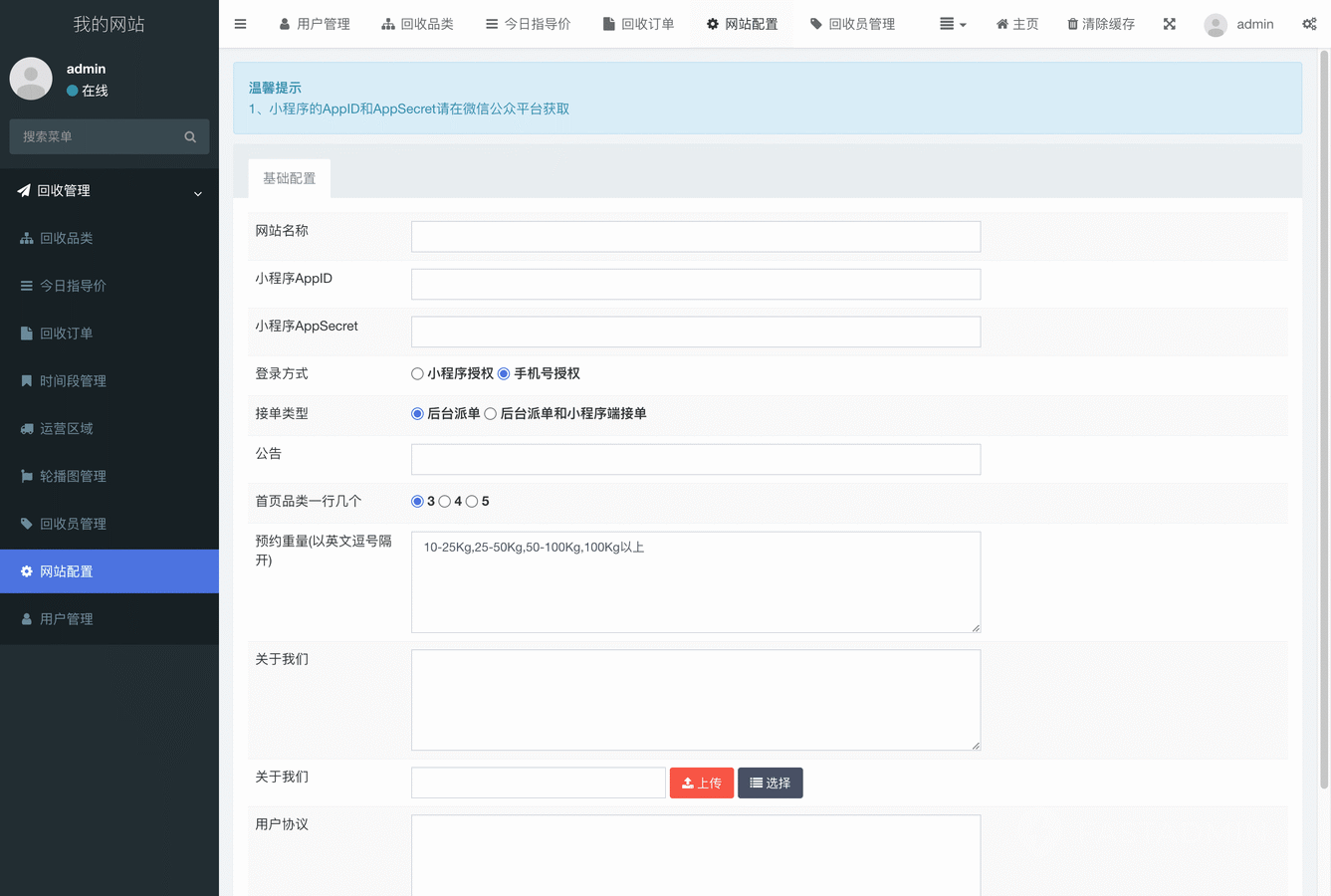 废品回收小程序管理后台: