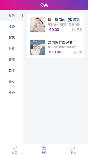 心里测试小程序是一款基于ThinkPHP+FastAdmin+UniAPP开发的心理测试小程序,提供全部无加密服务端源码和前端源代码,独立部署,不受限制