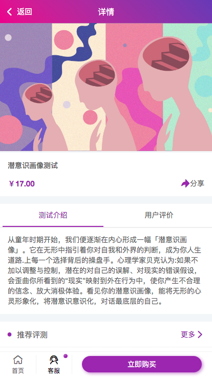 心里测试小程序功能介绍: