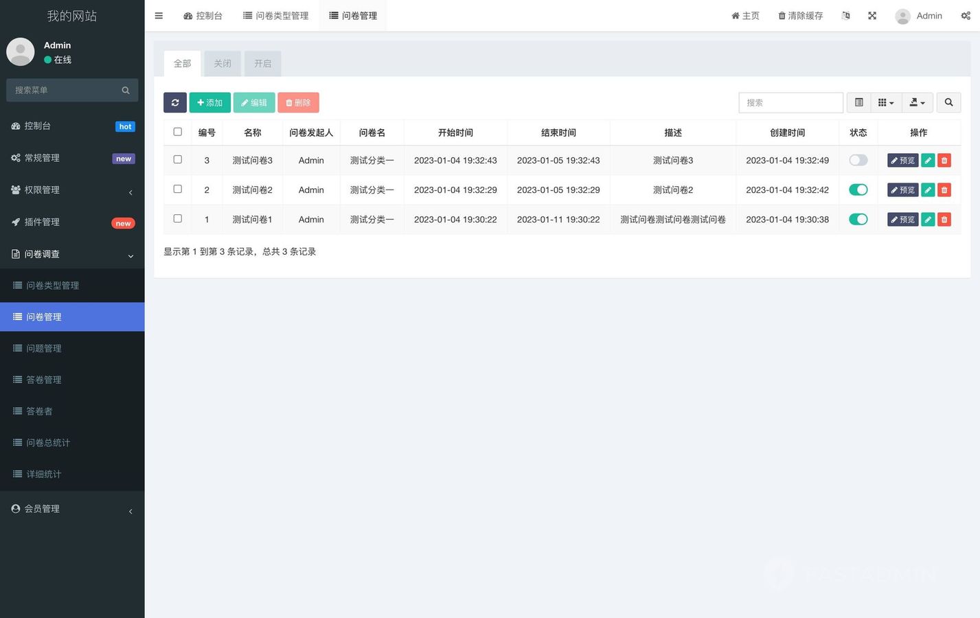 2、支持后台预览已添加的问卷调查