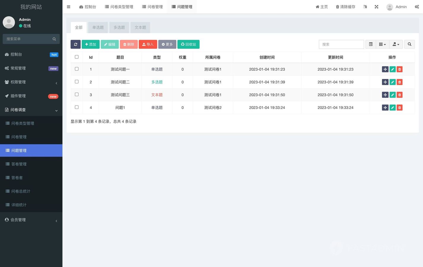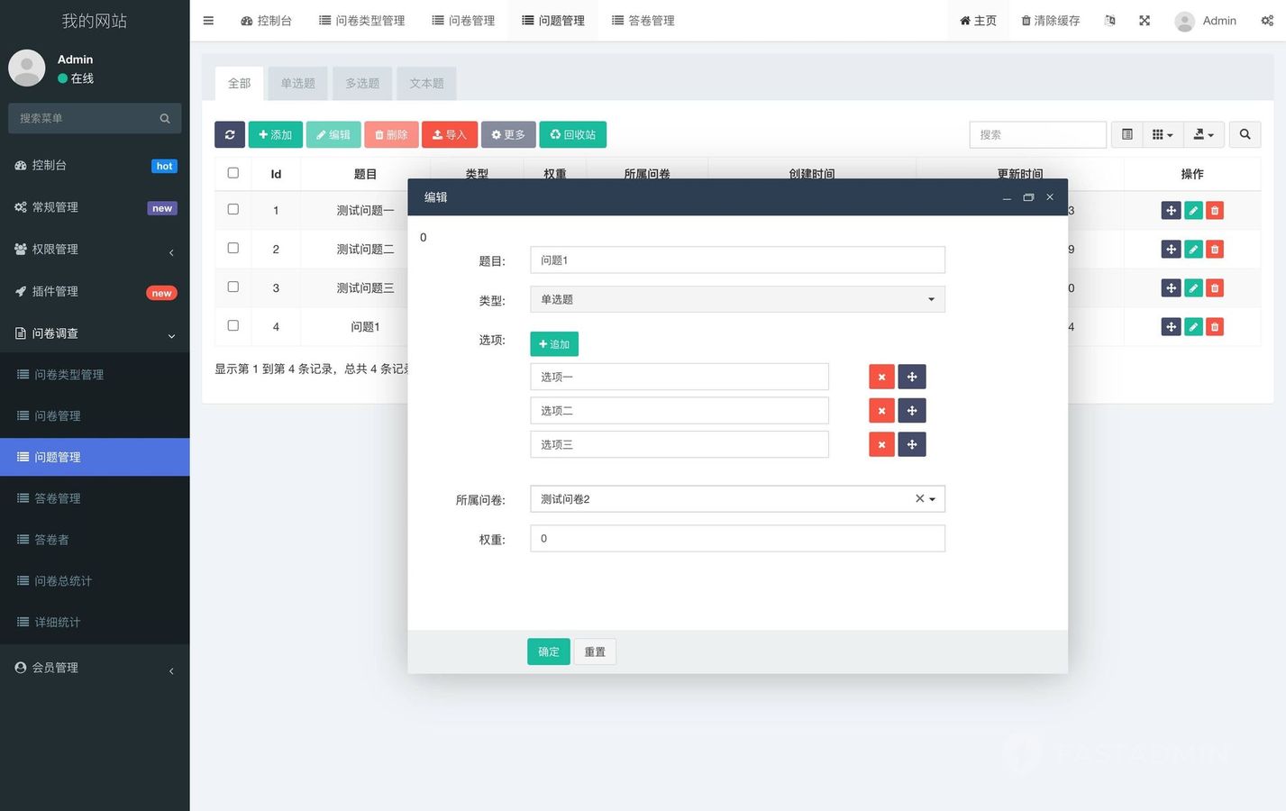 1、支持后台设置多种题型问卷调查题目