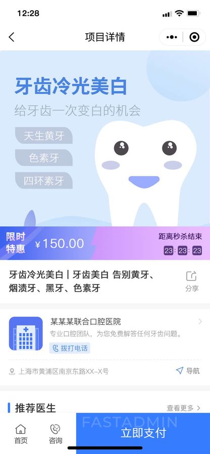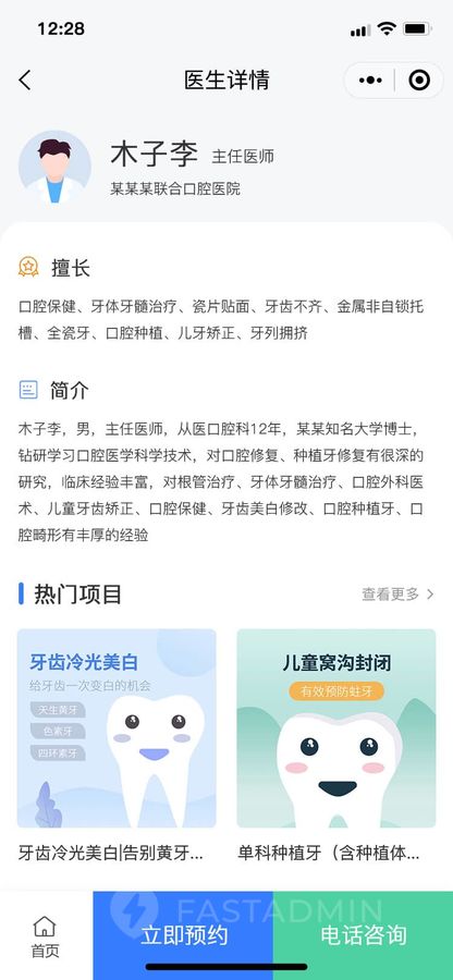 本系统底层框架以及管理后台是一款基于ThinkPHP+Uniapp开发的多门店医疗服务系统,目前支持微信小程序端、公众号端。支持创建多门店、商家端扫码核销、支持项目管理、活动管理、医生管理、预约功能、多端会员统一。全部无加密服务端和前端源代码,支持私有化部署。适用场景于口腔、美容、诊所、中医馆、专科医院、康复护理等需要预约或诊断的行业。