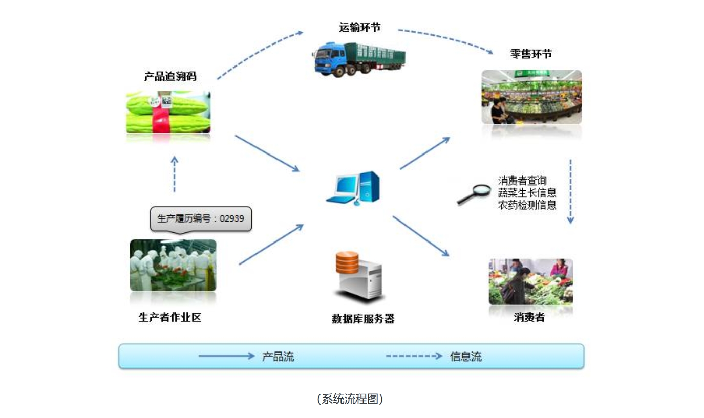 农产品质量安全追溯解决方案,利用二维码和RFID无线射频技术,针对农产品从生长到销售各环节的农产品质量安全数据进行及时采集上传,为消费者提供及时的农产品质量安全追溯查询服务,为农牧部门提供有效的农产品质量安全监督管理机制和手段。