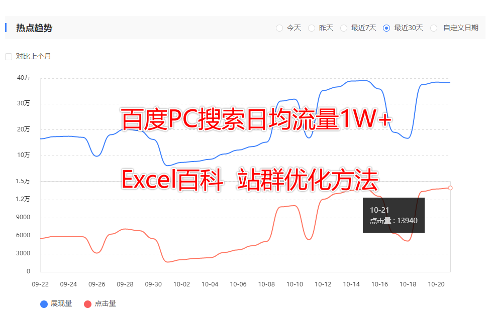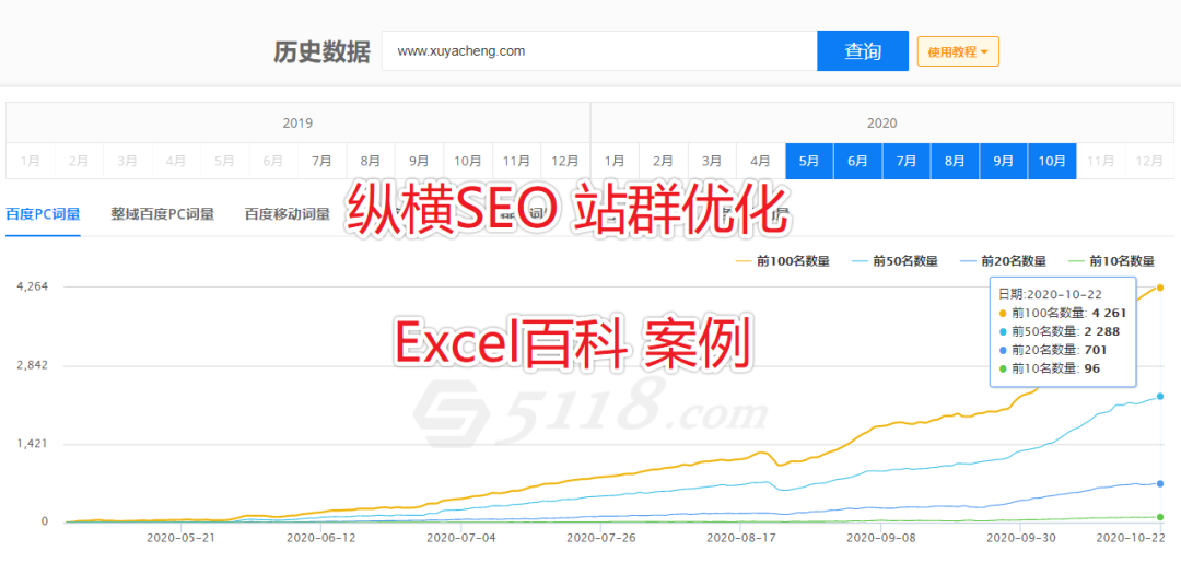 我们做Excel这个网站,不是覆盖了几个、几十个关键词而已,从相关品牌词、行业词、长尾词等,我们是覆盖了几万、几十万等精准词,所以这个量级是很恐怖的。只有把量级铺大了,才能带来大量的精准流量。