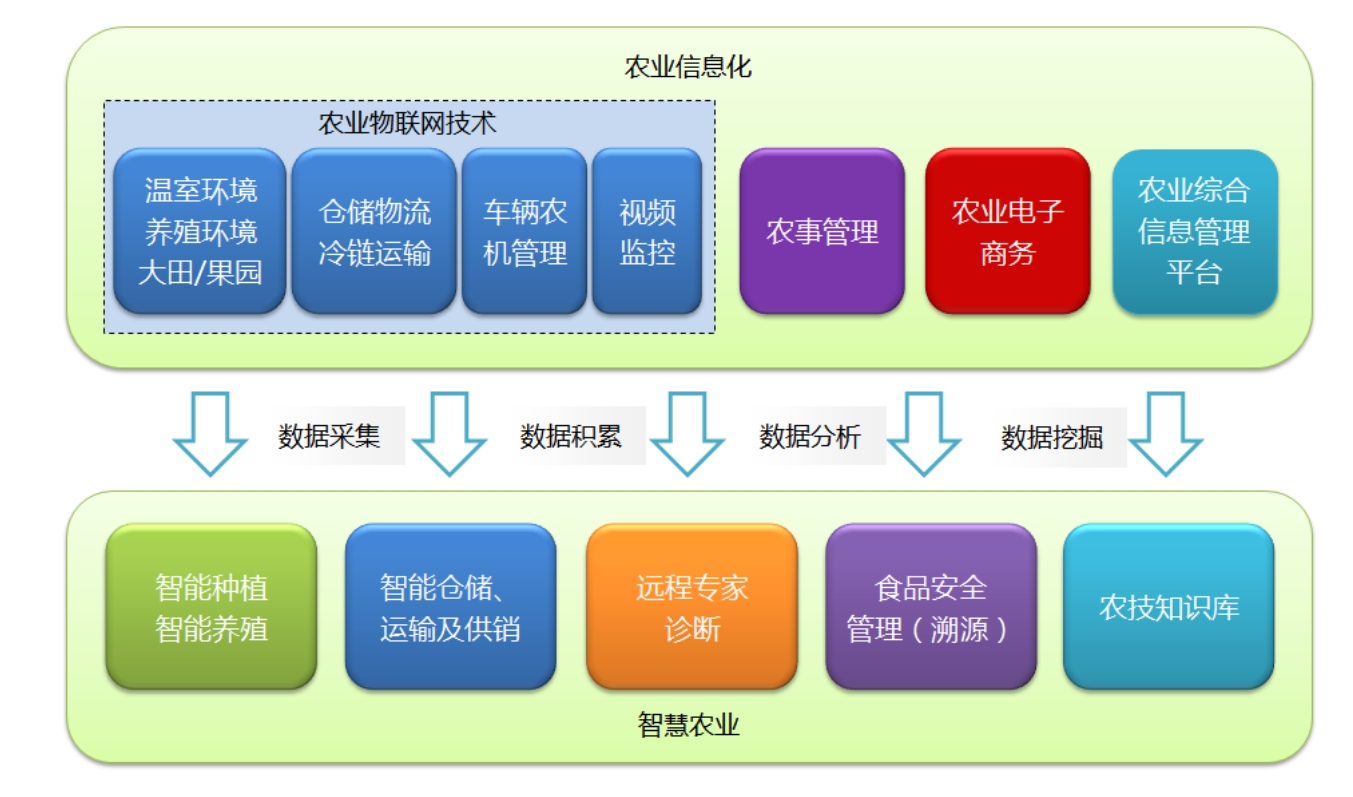 智慧农业解决方案结合了先进的网络通信、物联网、自动控制及软件技术,  包括农业智能环境监控系统、农场品安全质量追溯系统、农产品电子商务平台等。